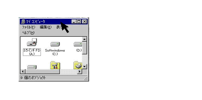 ●マウスポインタといっしょにウインドウが動き、指をはなした場所に移動します。