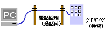 | 個人や事務書などのパソコンをインターネットに接続する通信業者。 インターネットを利用するためには「プロバイダ」との契約が必要です。 |