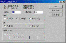 ●用紙サイズの設定は終了しても残ります。すでに設定されている場合は、確認のみ行ってください。 ●ここでの用紙サイズの設定は、自由に変更して構いません。ただし、A4の紙に縦向きでプリントアウトをする場合は、幅を最大”640”、高さを”480”に設定してください。