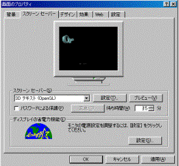 ●通常は”待ち時間”で設定した時間以上、マシンに触れなければ、自動的にスクリーンセーバー画面 に切り替わります。 ●マウス、またはキーボードに触れると、スクリーンセーバー画面から、元の画面に戻ります。 ●パスワードの設定を行うと、スクリーンセーバー画面から復帰するときに、パスワードの入力を求められます。授業では行わないようにしましょう。