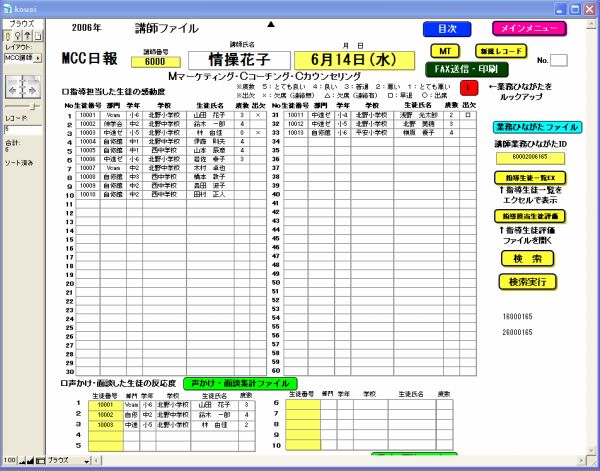 M(マネージング)C(コーチング)C(カウンセリング)の分野において日々の状況をデータベース化することによって、生徒・保護者を細かに把握し、日々の指導、退塾の防止、講師の管理などに大きく役立てることができます。