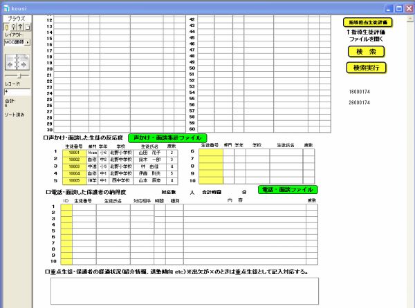 A授業担当した生徒以外の生徒で、声かけ・面談した生徒の反応度をチェックします。