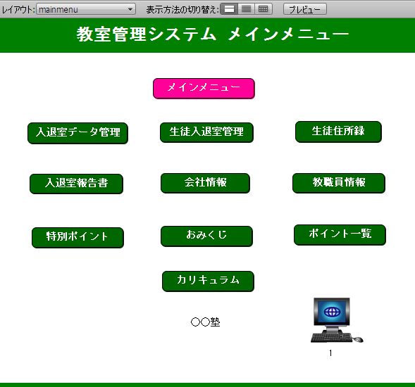 [classroomMS]フォルダの[inoutmessage.fp7]を開くと上図の画面が出てきます。